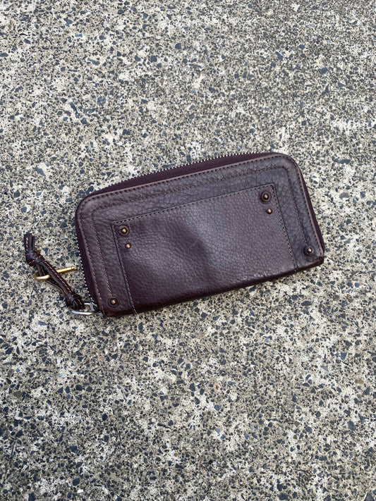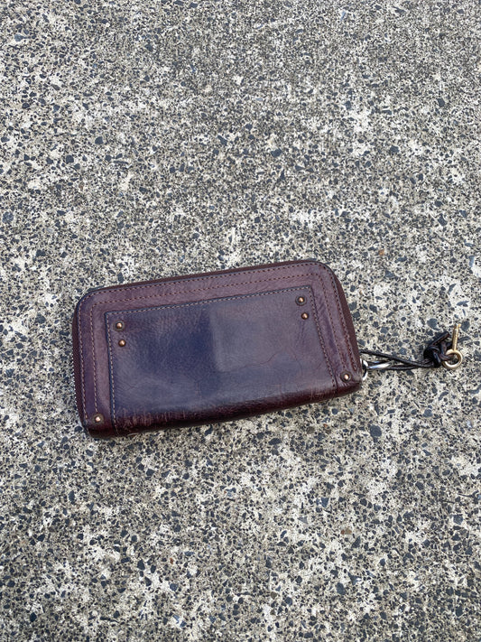 Chloe Paddington Long Wallet Maroon/ Brown Pebbled Leather