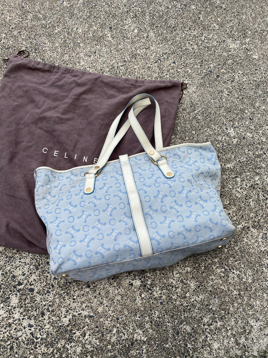 Celine Lily Boston Bag Blue Macadam Total Pattern